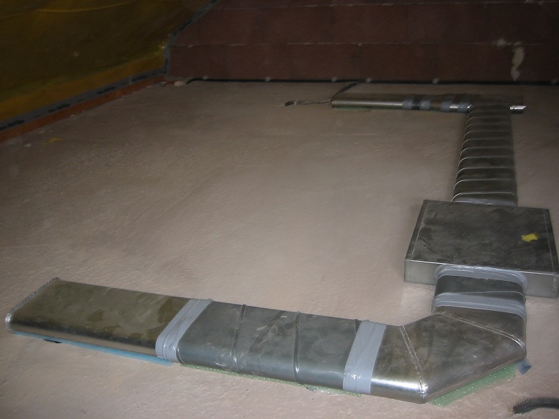 Verlegung Flachkanal / Rundrohr über Rohdecke.